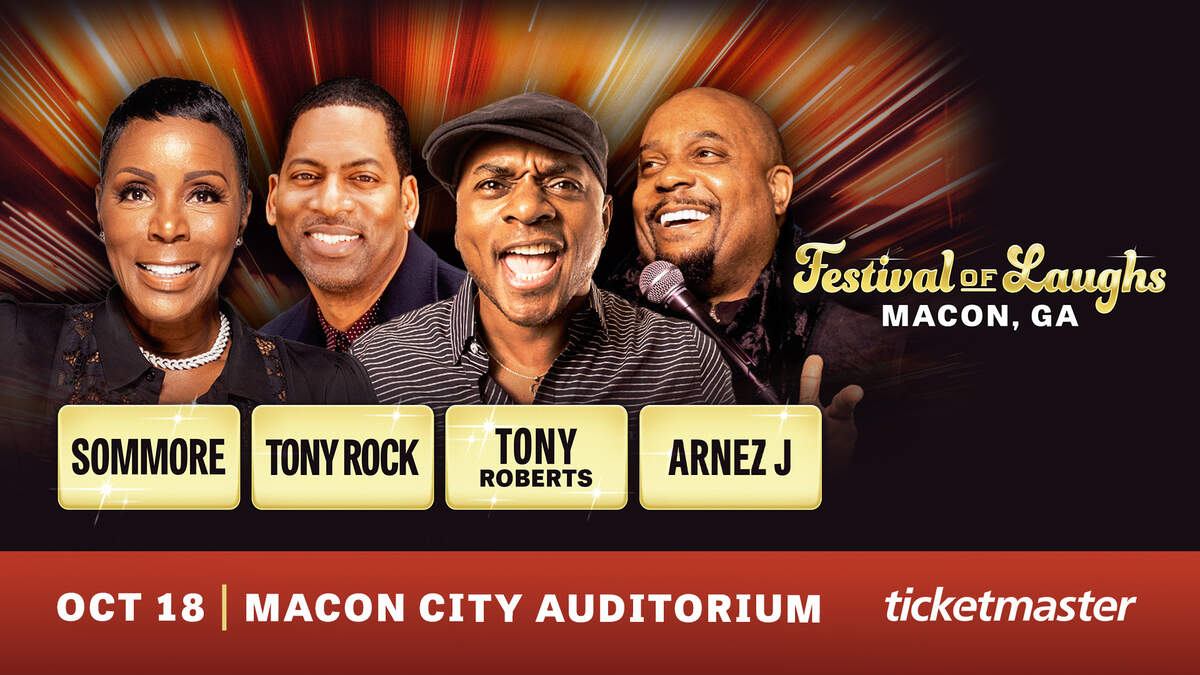 The highly-anticipated Festival of Laughs Tour is coming to Macon Auditorium on October 18. Featuring a diverse range of comedians, including Sommore (Netflix’s “Queen Chandelier”), Tony Roberts (BET’s “Comic View”) and Tony Rock (“Think Like A Man”), and Arnez J (BET’s “Comic View”), the all-star lineup offers something for everyone to enjoy.